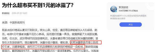 一直以来,冰露都以1元的价格,在超市里深受消费者的喜爱,不仅价格便宜,而且还口感清新,属于是中国饮水市场中主流的产品之一了。